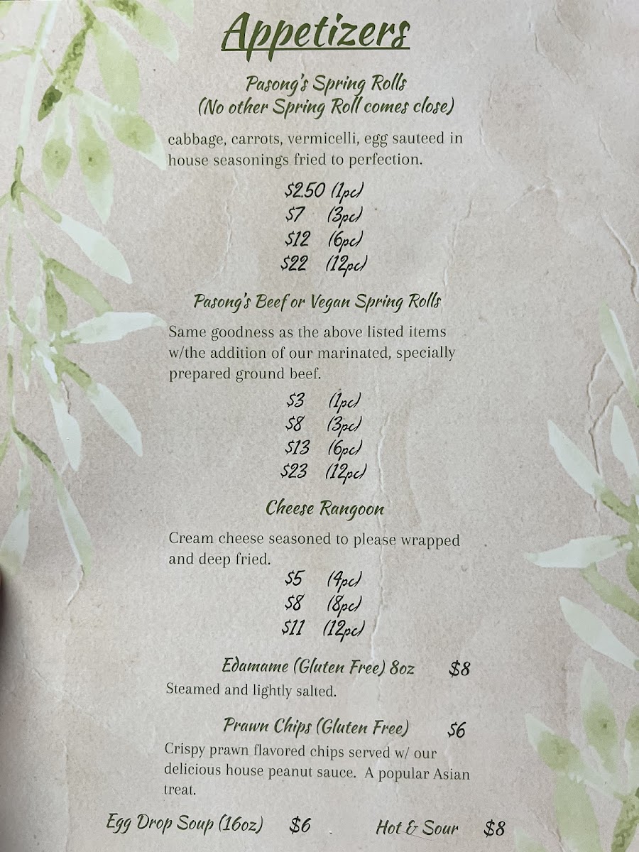 Pasong's Cafe offers a thoughtfully curated menu centered around Asian fusion classics with a casual, welcoming vibe. The selection feels just right for a laid-back lunch, a comforting dinner, or a relaxed gathering with friends and family. You’ll find a blend of familiar favorites and distinctive flavors that invite both easy enjoyment and a bit of culinary curiosity.
